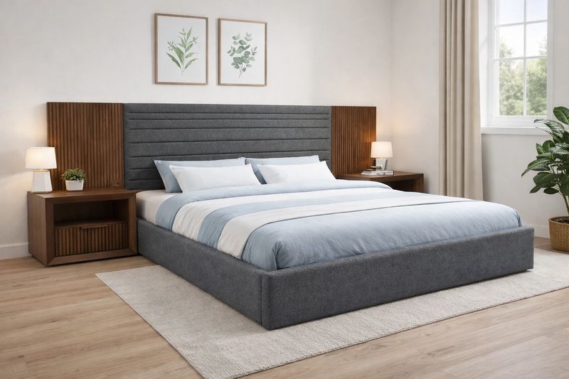 De diseño moderno que integra materiales y texturas para crear un ambiente cálido, elegante y perfectamente equilibrado para el descanso.